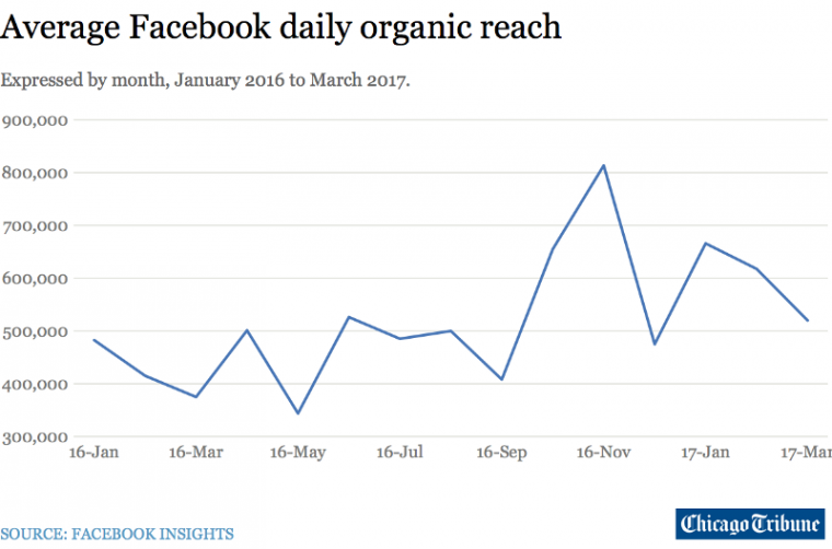 SocialFlow ha addirittura analizzato oltre 3000 post su Facebook mostrando un capitombolo della reach del 42% già nel 2016
