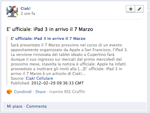 Altro rompicapo sono proprio i post… ad esempio su una mia pagina fan , i post provenienti da applicazioni (networkedblog ad esempio) non vengono visualizzati nel giusto ordine ma messi in basso, dando priorità a quelli inserirti manualmente.