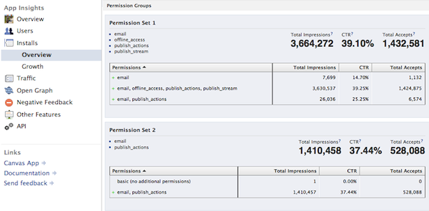 Ora potrete anche monitorare i dati inerenti le finestre di dialogo e di autorizzazione sulle applicazioni che vengono visitate dagli utenti unici. Questo vi permetterà di analizzare quanti utenti giungono a utilizzare effettivamente l’app e quanti altri si fermano, invece, alla pagina di richiesta d’autorizzazione.