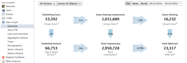 Di recente Facebook ha introdotto una nuova funzionalità all’interno di Open Graph Insights, il sistema di monitoraggio delle statistiche abbinato al social network di Menlo Park.