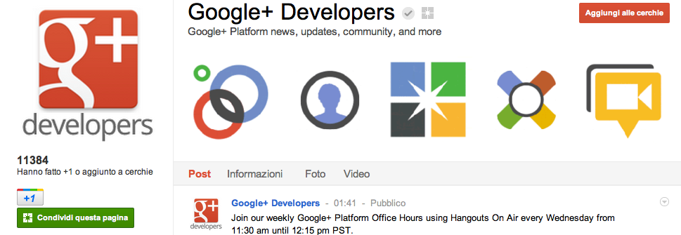 In queste ore Google ha annunciato ufficialmente il lancio di una pagina ufficiale dedicata agli sviluppatori su Google+, creata con l’obiettivo di tenere aggiornati tutti i developers sulle novità e sugli aventi “a tema” riguardanti il social network. Direttamente tramite il social network stesso.