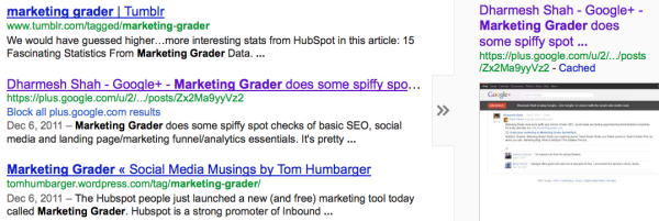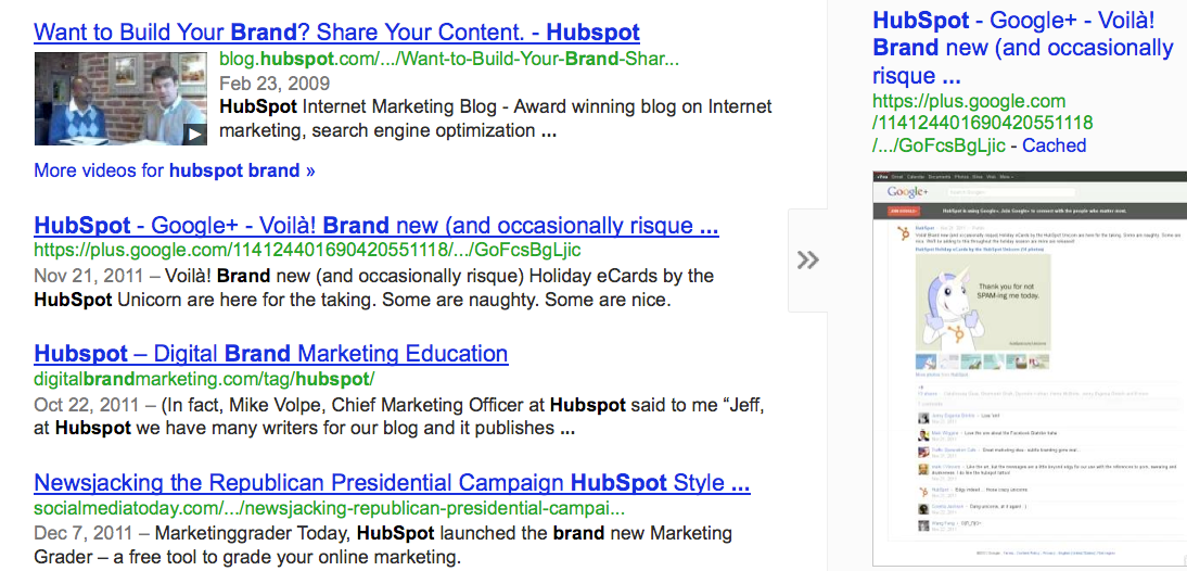 Come dimostrano i test di Hubspot – da cui prendiamo gli screenshot – le pagine aziendali vengono mostrate all’interno del motore di ricerca, con risultati che vengono aggiornati volta per volta.