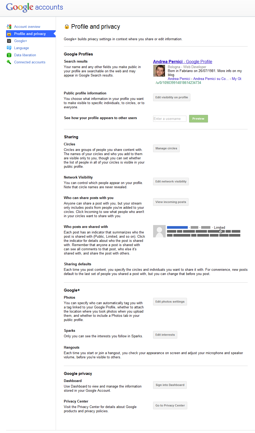 Queste sono relative a Google+ e non solo al profilo. Appena riceverai l’invito le vedrai 🙂