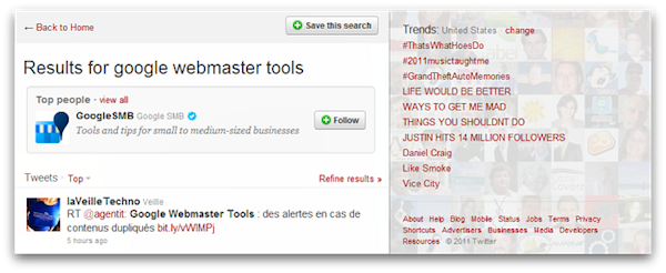 Questi primi test hanno inoltre evidenziato come Twitter voglia dare una rilevanza massima alle “Top News & People”, visto che per visualizzare tutti i risultati a seguire, quelli più “comuni“, è necessario selezionare l’apposita voce con il mouse. E’ chiaro che quanti verranno definiti come “top” da Twitter avranno un vantaggio notevole in termini di visibilità rispetto a tutti gli altri utenti coinvolti in quella stessa ricerca.